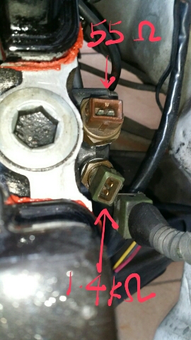 Did u guys know how many ohms that this 2 water sensor will send out? Location of sensor as below photo. Current check 1 is 1.4k ohms and 1 is 55 ohm. Suspect the 55 ohm sensor might not as per specification due found it housing was broken. Plz do advise if this sensor malfunction, will the engine also cant start? Tqvm | |||