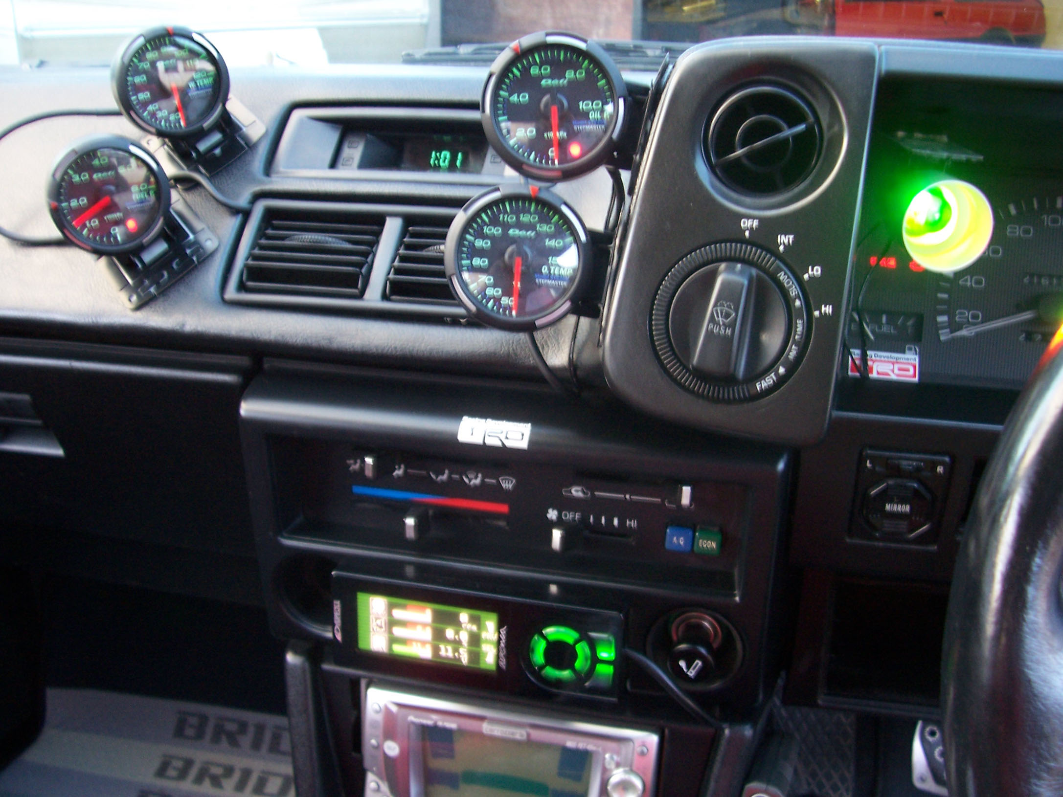 With the car nearly all back together and the interior nearly complete it was time to get some goodies into it so Defi gauges (oil temp,oil press,water temp, and fuel press) were bought for it as well as an Apexi Rev Speed Meter,Apexi Neo fuel controller and Defi shift light.