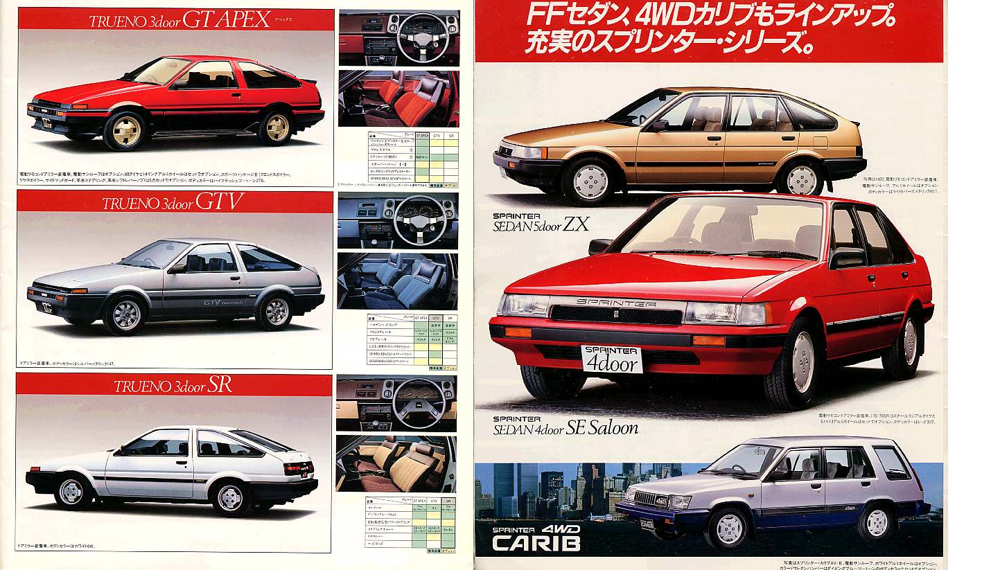 ZaX Wrote:I'm sure I did not get them from over there. As far as I can recall it was a Japanese site and it only featured the trueno brochure. (Otherwise I would have the others as well..banpei Wrote:Hmmm, I've got a different brochure... Dunno where I found it, but it was apparently more than 3 years ago. ![]() 1983 - AE86 Sprinter Trueno - import project 2013 - Honda Civic sport - daily driver 2004 - AEU86 dot ORG - daily domain Support our forum, buy from the AEU86 shop: ![]() |