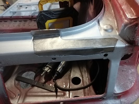 outside and in.... ....and nearly there And finally (?) a niggling little whole at the bootlid catch area... And of course, more niggly little bits... At this stage I thought I was ready to `key`the epoxy primer on the underside and finish with a final coat over the entire underside. However, things took a serious turn for the worst.... I spotted this: Which when I investigated further with a razorblade turned into this: So I then tackled it with a needle-gun to reveal more So while contemplating what to do, I found a local blasting firm and got the axle, front subframe and various suspension rods and links blasted All elevated and ready for spraying. I used Rustbusters epoxy mastic in black; EM121 Not perfect, but it won't be seen that easily as it all goes underneath the car. I found that even though I had thinned and preheated the paint, it started to go off in the gun after a period of time, so it needed to be further thinned.. I thought I may as well do the steering rack brackets and the radiator brackets while I had paint in the gun... That's us up to date I think. The gasket kit has arrived for the engine rebuild & I've got new crankshaft courtesy of FLOs.ie, rings, bearings, thrust washers and pump internals for the 20v BT rebuild. I have a couple of 16valve pumps that I may use in order to negate the need for the more expensive BT timing belt & risky hydraulic tensioner. Also SQ Engineerings water kit is here and a set of cops from a Yaris. Meantime I'm considering getting the underside blasted, if they can leave the engine bay alone as I've got is all finished and ready for topcoat... |