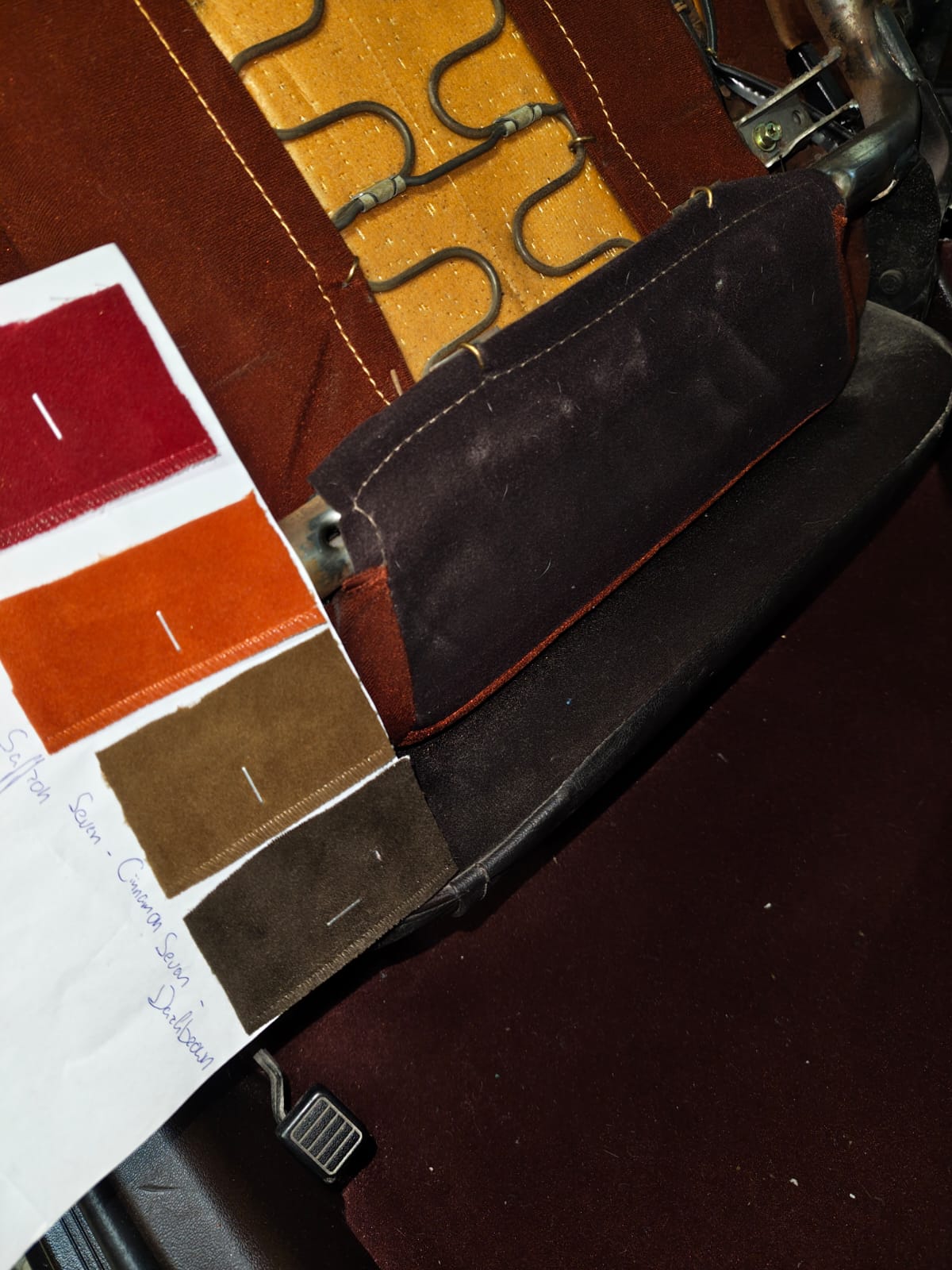 I suggested Seven because it was pretty similar in terms of material feel, but mostly because the color 'cappuccino' is a near exact match for the original cream (beige) interior. And it doesnt break the bank. I think I would be happy with the scarlet color myself. Did my own seats in completely different materials that look nothing like oem, but if I had the red/brown interior I think I would stick with something original-adjacent too. Here's some cream rear seats I did next to sunfaded originals. FABRICA MI DIEM, PVNC! |