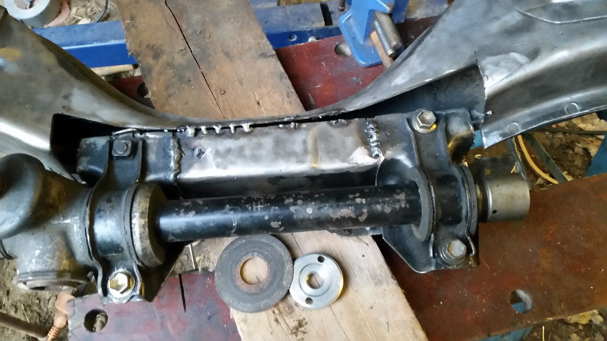 Did a super quick repaint on the wagon, just so it doesn't look like a complete disaster. With engine running issues sorted, exhaust modified and intake revised some, it goes pretty good and doesn't sound half-bad from any angle either, here's some videos (one from 2013 and one from last winter after repaint): Meanwhile, the worm & roller took a dump, steering wheel self-centering pretty much faded away last winter, I took it all off the car: And a quick inspection confirmed it was too far out of spec to decently dial in and still keep self-centering (even with full caster). New TA40 worm & roller costs a fortune, used worm & roller costs a fortune. I had a KE70 front sub-frame with rack & column laying around, so I gathered those parts and had a look: Then I took the TA40 crossmember off: I also like the angle grinder, so used that as a way to have a closer look: With these cars I've been meaning to get into something that, if a gun was put to someones head, they would say it could almost be semi-decent modification/fabrication work, so I kind of winged it from there: (Continues in next post) (Continuation of last post): You get the idea.. some time later: So that was the crossmember sorted, wasn't too hard, a bit of measuring, cutting, line it all up and tack it in place, measure again then go to town with it, I've seen far better, but to the techstapo it looks OEM from underneath so I'll let it slide. In the next post we'll be having a look at what can be done with the steering column ![]() With the engine crossmember sorted, steering column is next. The KE70 column>rack steering spline shaft steery... thingy.... joint end up top, TA40 column>steering box... hardy-joint (?) bottom: As we've well established I'm beyond caring about technical pronounciations at this point, the important thing is the column diameters are both the same, and the telescopic shafts are the same too. The KE70 column end merely needs adding onto the TA40 column, which allows for keeping the same ignition lock, which saves time in shortening, modifying and adding TA40 bits to the KE70 column. Great! Moving on: Weld KE70 end onto the TA40 column, by simply sliding it on and filling the original holes the drilled spot welds: Then adapt the TA40 column> firewall mount to the KE70 end (add a few welded bumps on the column tube, on the other side to stop the column from sliding around) then test-fit: Then repaint: In the next post, steering shaft and exhaust has to be sorted. Right, with the above bits sorted, I merely installed the crossmember. The KE70 steering shaft actually only needed a bit of lengthening. As it turns out this is tubed from factory. So I cut it in half nearly at the rack-side uni-joint, then slid a piece of smaller diameter steel rod I had laying around that fit perfectly inside the shaft tube, and filled the whole b*tch with the MIG, then gave it some cuts with the angle grinder and filled those with the MIG as well (to be sure). Then simply grind it flat with the flap disc and repaint so it looks pretty, you know how it goes. Next up was the exhaust. When I did the engine swap years ago, I had to get the car on the road quick. That means circumventing the steering box.... With a SOHV 2T that was no issue, but the 4A-GE head is wider. After I mounted the transmission, I then had to place the engine over to the passenger side, and since the car up until that point was mostly for laughs anyway, the "downpipe" was simply a stock 16v RWD exhaust manifold with some 2mm steel plate cut into triangular pieces, and some 2" exhaust pipe cut in half length-wise added to the front and rear, then cut it all at the bottom and a 2" bent pipe: Not pretty, but as you saw the car went forward, didn't sound too bad, and went sideways too. That wont work with the steering rack though, so I had a look around in the parts bin, found a stock AE86 exhaust manifold and downpipe, then I test-fitted for the fun of it: ..For once, something fits and I don't have to do anything From there all I had to do was modify the downpipe (didn't take long) with a over-size end to accept the existing exhaust system: Then use a powered sticksaw to shorten the exhaust piping to suit the downpipe, I don't have pictures of that but you get the idea. All that was needed was to screw the tie rods in and match the steering rack on both ends, no pictures of that but it's as easy as anything. Contemplating just grafting this in while I'm at it: The issue is tackling panhard body-bracket, as the fuel tank is sitting just where that would go. Meanwhile there are other things going on. I got this a while ago: 83 W-German, used as a field car in Poland before it got exported, then I took it over (minus interior) and got a free brand new windshield with it as well Bad thing is rust (as always), and a lot of it, so more to come on that. Speaking of which, having grown tired of welding rust and modifying the `40 wagon that's still hard to drift under any conditions (owing to the leaf rear springs), better to just keep modifying it until I can make something solid out of it. Meanwhile my neighbor asked if I wanted to buy his car, I figured what the heck, solid winter beater and will be nice to go sideways without axle tramp shaking my gums out on washboard winter roads, picked it up on the day: What's left of this TA60 looks like all sod, but it's actually pretty solid and has been owned and driven by truck drivers exclusively, so drivetrain is in excellent shape, I've never driven with a tighter T50 (and that includes rebuilt ones), and it's 4-link which makes it ridicilously easy to drift. Just needs a quick do-over, LSD and steering lock mods to look and drift the way I want it to. So far only modded one thing: The China-spec rally lights were anything but satisfactory. And seeing as I need to see where I'm going on winter mornings: For comparison, here's the OEM wax candles: ZAP More to come. 1x AE86 84` Zenki Coupè Levin 4A-GE 20v 1x AE86 83'