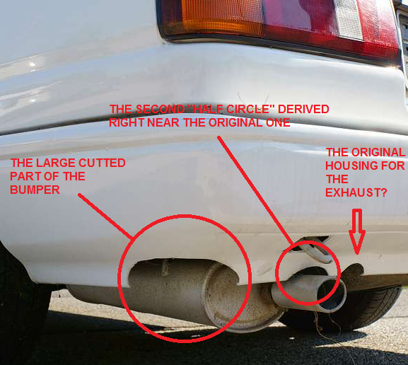 I'm still searching for our favorite Toyota. Twice in a row I arrived late to negotiaztion for two different AE86 from Greece. Now I'm in charge for the third time. Scrolling the photos of the car I noticed that the exhaust seems to be slightly shifted towards the outer side (left), resulting in one more "half circle" obtained by the bumper as well as another one on the left side of the bumber, this time significantly bigger), I believe originally non-existent. You can see them by the attachment. Is that an aftermarket work (and so any idea why it was done?) or what? |