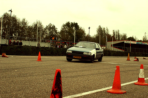 The layout of this track is very tricky. Yes the speeds seem low, but there are almost no things to slow you down when things go wrong. In my case, I ended up on top of that hill/ridge you mentioned. All 4 wheels of the ground. If I had gone any faster I would have ended up over the ridge and onto the part of the track behind that. A fast competitor would have already reached that part of the track..do the math.. I read a couple of remarks on the gummen forum and strongly dissagree. The lelystad circuit is NOT the ideal drifting location. There are almost no safety measures in place and certainly no run-off area's. The circuit is tolerated by the municipality. The first person that becomes seriously injured or killed will lead to the closure of the track. Now imagine a club day, a FAR faster track layout then usual and a lot of drift indoctrated RWD people, some with skills but most with none at all. You can see that the stage seems set for disaster. It could have been you. That ridge could easily tip the car over. The fact that a heavy ass alfa 75 V6 put in the fastest time of the day tells me enough. Speeds were much to high. Any lower and those heavy ass POS wouldn't stand a chance. Just out of curiosity..what times did the E30 brigade run? I'm usually able to keep a couple of seconds between me and them, so that would be a nice indication. (BTW the fastest times during slalom days are never lower than 1:00. these times are by formula fords/opel lotus and a couple 270bhp, 700kg Escort mk2's) A wheel to steer the front of the car A pedal to steer the rear |