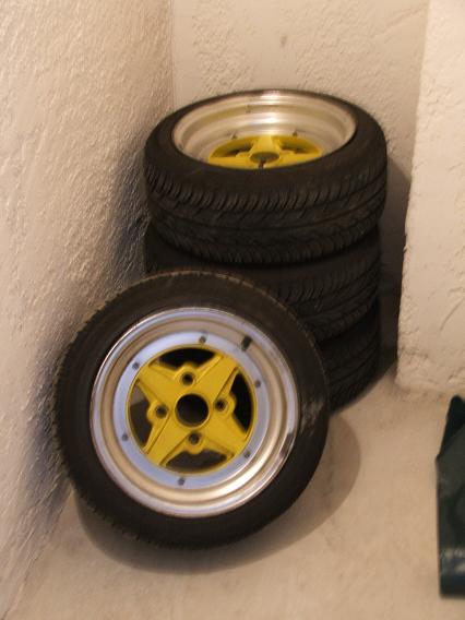 The HKS springs were 111 USD, the JUN flywheel was 323 USD, postage and credit card charges were 110 USD, total 544 USD = 420 EUR approx. Anyway, there's some news. I finally got the short-shift and big-small-port adaptor from Gabriel at T3. Quality is beyond judgement. Has to be seen. Cost came to 308 USD total, approx. 240 EUR. The new head is finished and now we're working on the block. Assembly of the motor should be finished by Saturday. Then all synchros will be changed on the gearbox. Also, the car is being painted in the engine bay. It took me a while to strip all the stuff out of there so the paintshop could get rid of the rust and oil and paint it. Pictures of that when I tow the car back to the mechanic. Finally I got me a used set of 4 Work Equip 01 wheels with tyres. Condition is nearly perfect (except the yellow colour |