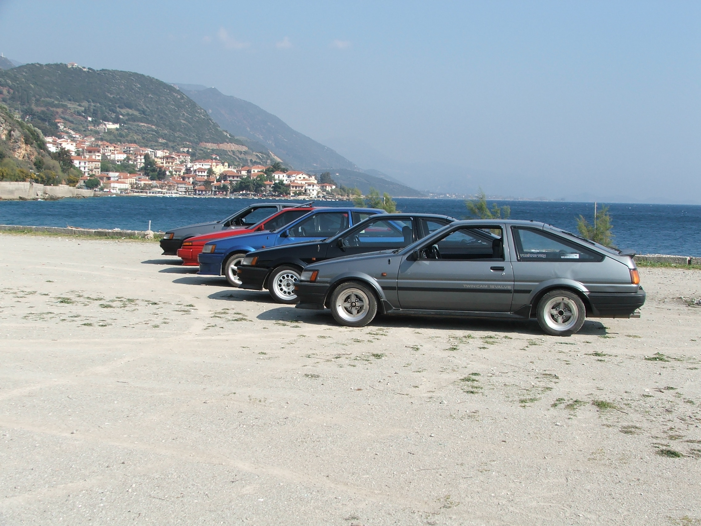 dikolotour finally found and bought a nice 86, so we thought a meeting was in order to celebrate and get together. The meeting was quickly arranged for the 18th of March in Nafpaktos near Patras. Unfortunately, 3 guys couldn't make it, so there was only 5 AE86: alimonos, dikolotour, Dorito86, Euripides and VALDERAMA. We did, however have the pleasure of kp61 and nmwisima presence, with thei E12 Corolla and NA mx5 repsectively.