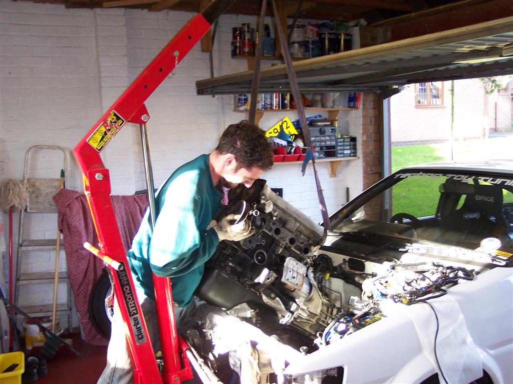 my brother and I have had a fun day removing the engine and gearbox from my hachi. Before he arrived I striped out most of the dashboard apart from the crash pad itself so I can begin removing the rest of the aircon wiring and refridgeration unit. This will also allow me to remove the remote central locking wiring and unit, and almost certainly the electric windows at some point. The dash pannel can now be worked to install the oil temp and water temp gauges. We decided to try and get the gearbox and engine out in one go - and we nearly did apart from we ran out of lift on the engine crane lol. So whilst it was all hanging in mid air we had to remove the gearbox which was fun. So - what did we find. 1. The engine is standard as hell inside. 2. The flywheel looks pretty standard 3. The pistons and rods look standard 4. I am not sure how to determine this for sure but I am pretty certain this is not a 7 rib block, no sign of oil squirters anywhere 5. The cams are completely standard 6. The head appears to have had no work at all. When we removed the sump we found lots of bits of metal on the oil strainer/pickup which is never a good sign. So onto the damage 1. The main bearing closest to the back of the engine is badly destroyed 2. The big end bearing closest to the back of the engine is badly destroyed 3. The conrod closest to the back of the engine has a damaged bearing surface from the bearing failiure 4. The crank is marked from the main bearing failiure and the big end bearing - hopefully this can be reground. 5. cam seats are a little scratched but I'm not sure how serious this is. The bores look in great shape though - and the piston rings seem like they are ok. So based upon all of this we can determine that the previous owner in japan simply banged on the throttle bodies and freedom ecu and ran it standard with external bolt on parts. If it lasted 210,000km thats not too bad I guess. Now we have to decide what we are going to do to recover from this mess. Needless to say it wont be cheap. Regards Ian. |