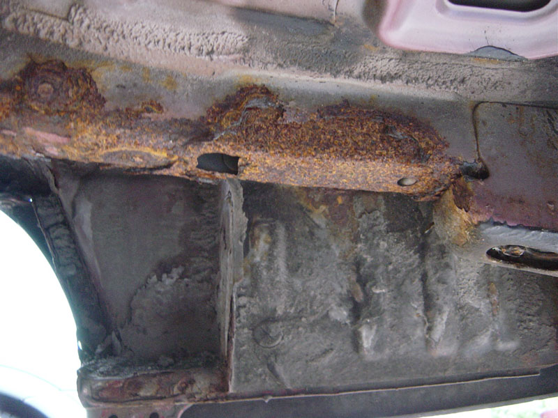 When I bought this car, it didn't run, but thanks to a new fuelpump (& Rikard!) we got it back to life. The engine runs great, but I'm afraid the starterengine has passed it's glorydays... We'll see how long it lasts! All in all the car has pretty much rust damage, but somehow most of it is located on the easy interchangeable parts, like doors, bonnet and bootlid! I've already bought a new set of doors and a bootlid (rustfree!). There is however some rust on the bodyshell of the car. Especially the edge under the bootlid is pretty much "gone". Also the bar onder the boot (RHside, the one which starts just behind the right rearwheel and goes over the fueltank) has passed away. But nothing a little welding can't fix... Somehow the rearwheel arches are in pretty good shape. Just a small spot on the surface, nothing more. The right front fender is ok, but on the left one there is just some small rust on the surface around the antenna, but a little sanding will be enough to solve this problem. A few pics of the problem area's: Why motorsports? Because other sports require only one ball! |