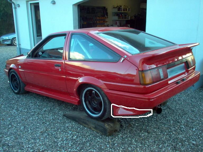 Rear bumper extension... Most of us know the little fins that you can mount on the sides of the rear bumper so the lines of the sideskirts are carried trough all the way to the back. JBlood makes them (those are mucho expensive, and so are the copies), and toyota europe made the for the euro market bodykit. Now imagine something similar to those fins, but connected by a thin edge going all around the bottom of the rear bumper.