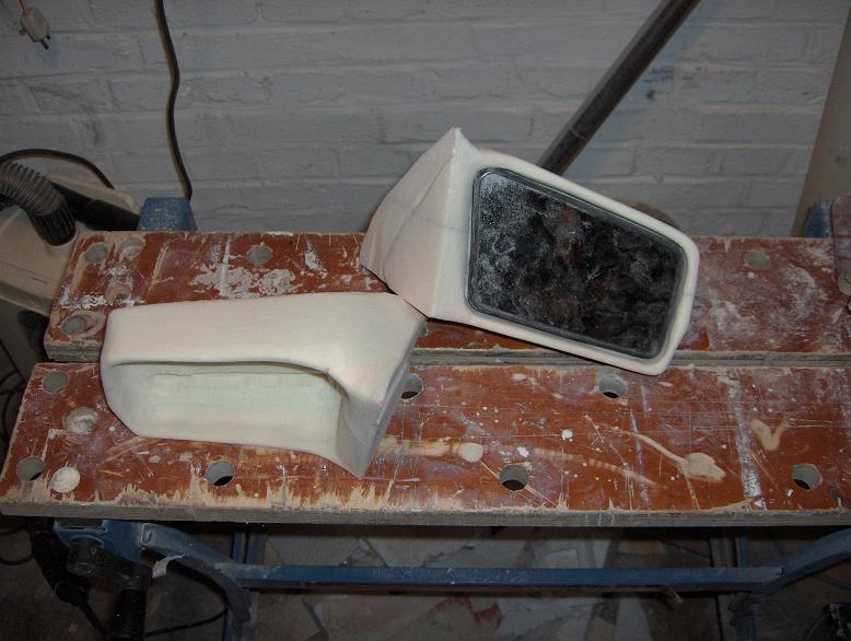 Today i've got rid of all the rough surface by sanding the mirrors. They are all smooth now . I also made the connections to the door (litte white things).What is left to do: Make them fit perfect on to the doors Another layer of epoxy and some glasfiber. sanding them again to make them super smooth An then hopefully the finishing protective black layer Mounting them on the car..... but that is if everything goes as planned haha