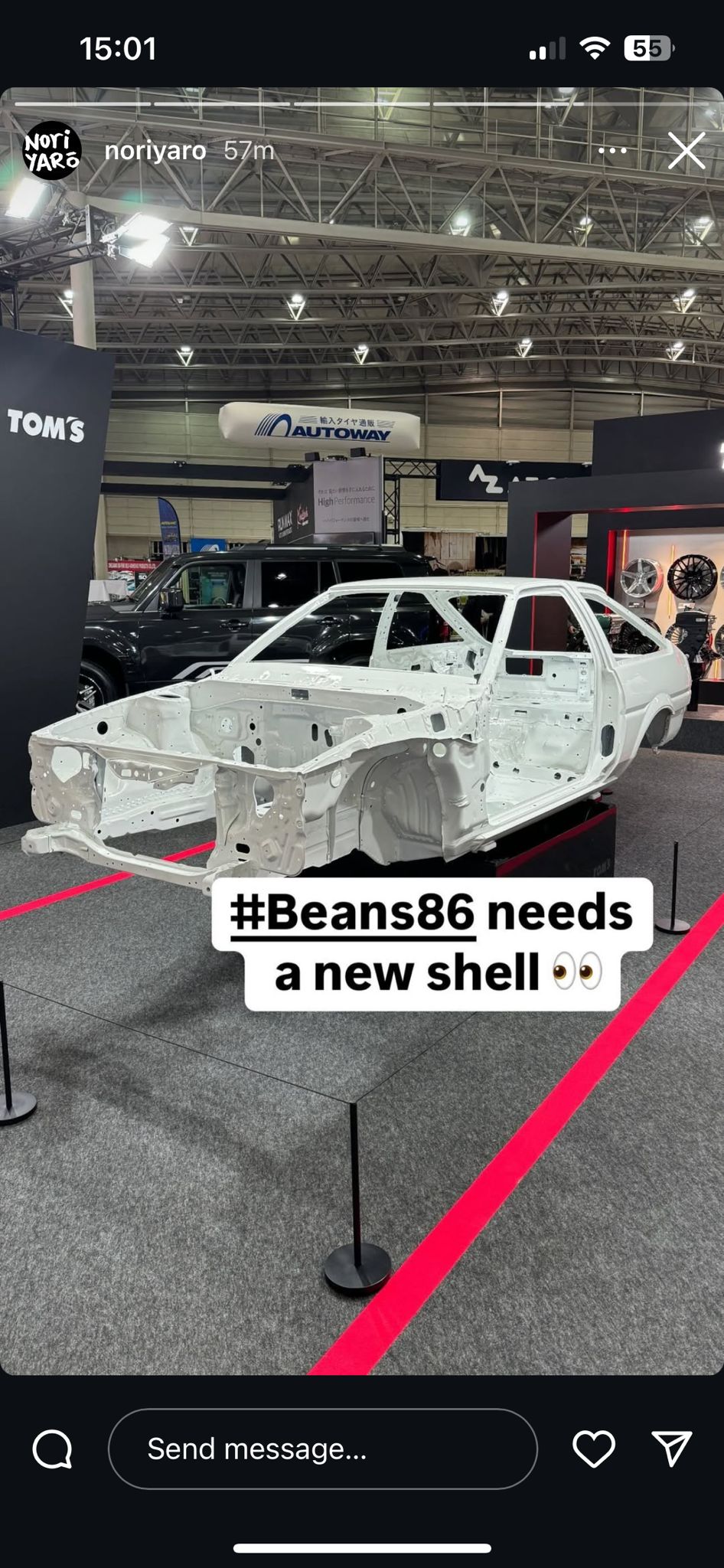 At first many people (including me) misunderstood this news that they were going to create new shells, but on the contrary: they will only rebuild existing shells. The question is whether TOM's will source the shells themselves or you can bring your own shell and have that restored... You can also order your new shell with a completely rebuilt TOM's engine: And Nori Yaro already posted this to Instagram: 1983 - AE86 Sprinter Trueno - import project 2013 - Honda Civic sport - daily driver 2004 - AEU86 dot ORG - daily domain Support our forum, buy from the AEU86 shop: