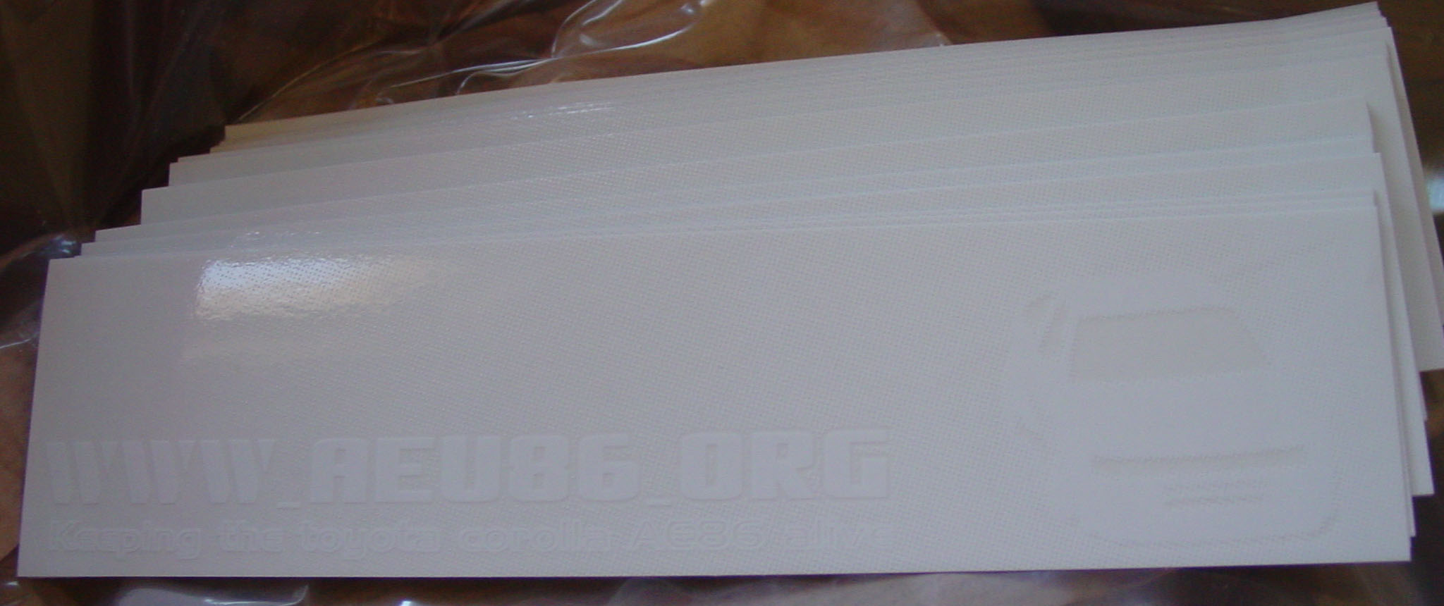 The attached pictures are just a teaser. These are white stickers on a transparent background but since they come on white paper you can't see to well how they are yet ![]() My wife took the package in, tonight I will put one on my car and take a good picture of it. Anyways, the stickers are 20cm by 5cm (8 inches by 2 inches), they will be 2 euro's a piece + postage (39 cents within holland). If you order more then 1 we only charge postage once ).We've also got a shop up now: http://shop.aeu86.org but its new so we hope it will work without a problem ![]() You can also email me or Art offcourse. Greetz, Bastiaan "mux213" Olij Moved down under, no more hachi |