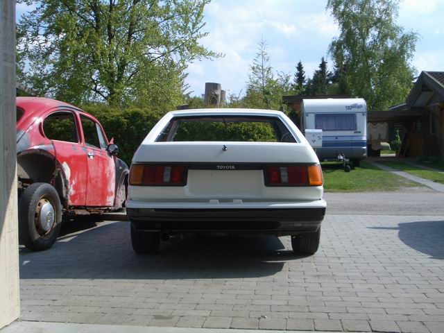 Regarding the blue Hachi, it´s a friend of mine who owns it. He´s a Toyota mechanic, and has been helping me out these last couple of days with the wiring probs i´ve been having. Any way, 2 more pics after i installed the rear quarter windows and the rear window. Also note, that i replaced the front Yokohama 195/60-14 A-038R for some smaller Dunlop 185/55-14 because they wouldn´t fit proberly. Now all i actually need is the front window, and some oil in the LSD, and i´m all set to go. Well, theres still alot of work to be done with the interior, but that will have to wait till after MOT