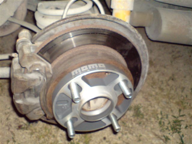 I ordered Racemax.it studs (total length 67mm, knurl diamm. 14.25mm) and Momo hubcentric spacers no.14441246011 (20mm, hub 60.1mm). I paid 4€ per stud and 40€ a pair of spacers. Studs I just screwed in. It looks nice. Still need to fix front wheels.