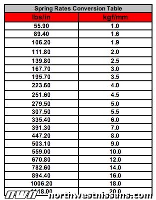 Mux213 Wrote:Note that many US based guys use the LBS notation, there is a formula for going from kg/mm to LBS in the technical FAQ. 1984 Toyota Corolla 4AGE 20v 2007 Subaru Impreza STi |